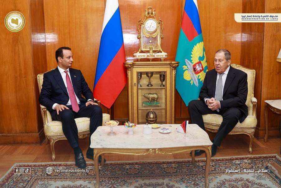 التقى مدير عام صندوق التنمية وإعادة إعمار ليبيا المهندس بالقاسم خليفة حفتر وزير الخارجية الروسي سيرغي لافروف في مقر وزارة الخارجية بالعاصمة موسكو وتم خلال اللقاء بحث سبل التعاون المشترك خاصة في مجالات الإعمار والتنمية بما يعزز العلاقات الثنائية بين البلدين.