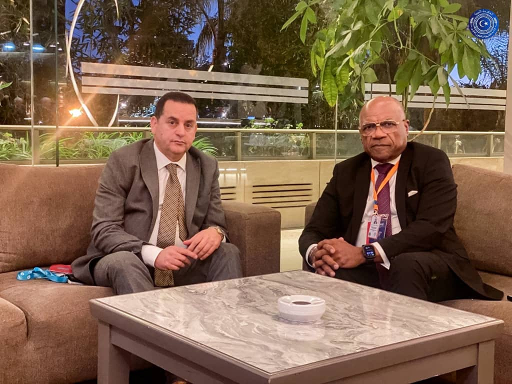 عقد الدكتور عبد الهادي الحويج، وزير الخارجية والتعاون الدولي بالحكومة الليبية، لقاءً موسعا مع ليوناردوس شي أوكيتوندو، نائب رئيس لجنة الشؤون الخارجية في برلمان جمهورية الكونغو الديمقراطية ووزير الخارجية الأسبق