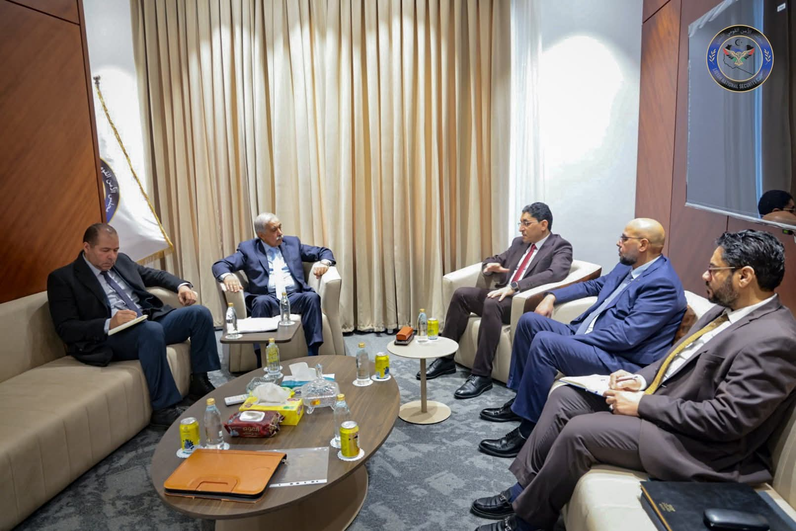عقد مستشار الأمن القومي الليبي، الفريق أول "عبدالرازق حسين الناظوري" اجتماعًا موسعًا مع وزير العمل والتأهيل المهندس "عبدالله أرحومة" بحضور رئيس الجهاز الوطني للتنمية الدكتور "جبريل البدري" لمناقشة عدد من الملفات المتعلقة بتنظيم العمالة الوافدة