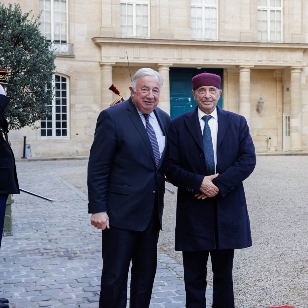 التقى السيد رئيس مجلس النواب المستشار “عقيلة صالح ” رئيس مجلس الشيوخ الفرنسي السيد “جيرارد لاروشيه ” ، و بحث اللقاء الذي عُقد بالعاصمة الفرنسية باريس عدد من القضايا التي تخص الأزمة الليبية وكذلك سُبل تطوير العلاقات الثنائية بين ليبيا و فرنسا. وأعرب رئيس مجلس الشيوخ الفرنسي عن تأييده لمقترحات السيد رئيس مجلس النواب بشأن حل الأزمة الليبية من خلال الوقوف مع الشعب الليبي وحقه في اختيار رئيسه وبرلمانه عن طريق الانتخابات المباشرة خاصة وأن مجلس النواب قام بواجباته كاملة في إصدار قانوني انتخاب الرئيس و مجلس الأمة وتقديم لجنة( 6+ 6 )نتائج أعمالها ونالت رضا مختلف الأطراف وأعلن مجلس الأمن الدولي دعمه لهذه المخرجات كما أكد خلال اللقاء على التطور الذي تشهده العلاقات الليبية الفرنسية على مختلف الأصعدة بما يحقق مصلحة الشعبين الليبي والفرنسي