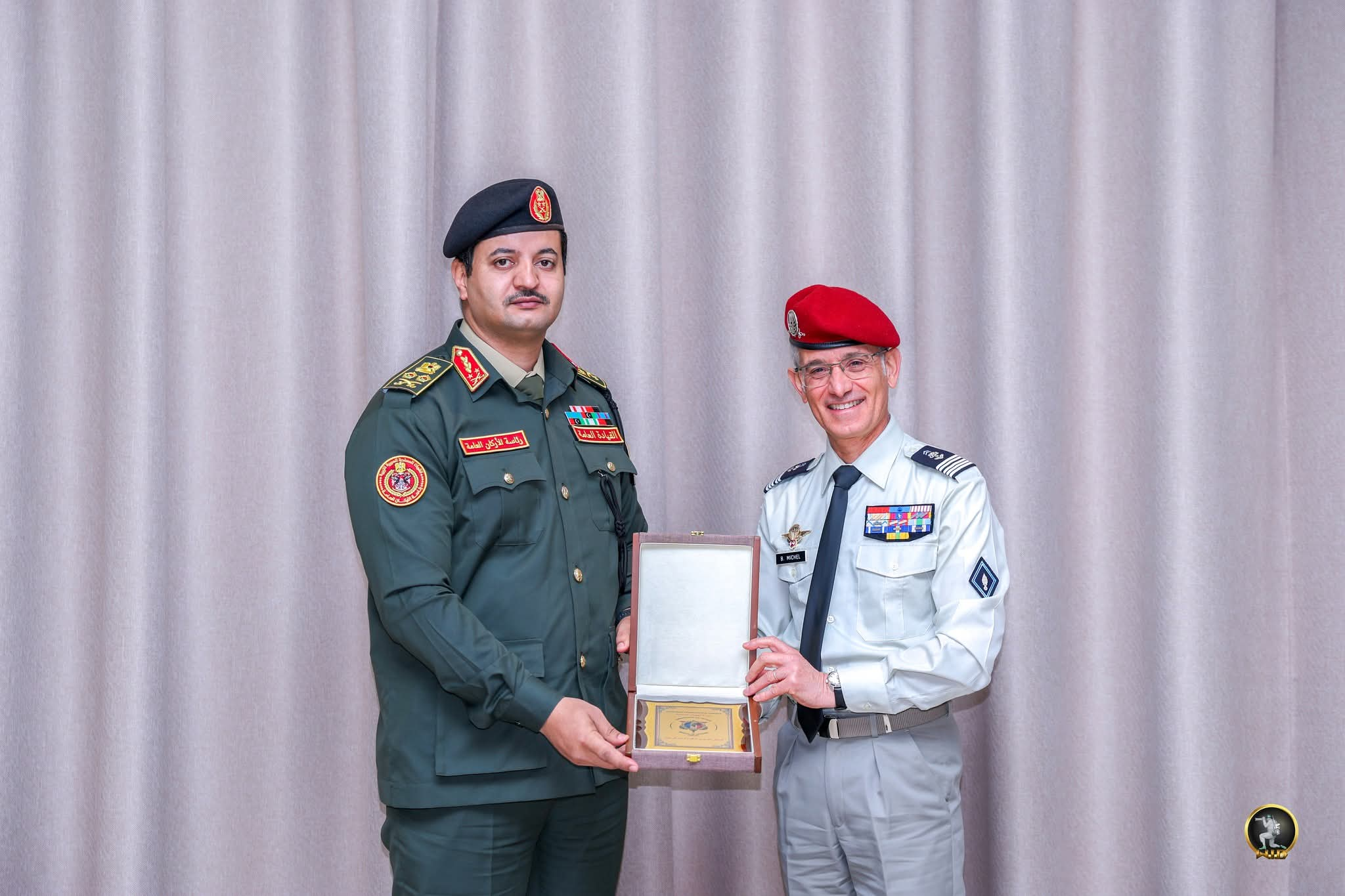 استقبل رئيس الأركان العامة، الفريق أول ركن خالد حفتر الملحق العسكري الفرنسي لدى ليبيا، العقيد بونو ميشيل، والوفد المرافق له، في مدينة المشير خليفة حفتر العسكرية وخلال اللقاء، تبادل الجانبان وجهات النظر حول القضايا ذات الاهتمام المشترك، وبحثا سُبل تعزيز التعاون العسكري في مجالات التدريب والتطوير بما يخدم المصالح المشتركة كما رافق المفوض العام للمدينة العسكرية، الفريق عبد الله الثني، الملحق الفرنسي ووفدًا من الجيش الفرنسي في جولة داخل المدينة، حيث اطلع الضيف على مرافقها، مُثمنًا جهود القوات المسلحة الليبية في تجهيزها وفق مواصفات حديثة ومتطورة أشاد الملحق العسكري الفرنسي لدى ليبيا، العقيد بونو ميشيل، بمرافق المدينة المشير خليفة حفتر العسكرية، خلال زيارة تفقدية رافقه فيها المفوض العام لمدينة المشير خليفة حفتر العسكرية، الفريق عبد الله الثني"، ووفد من الجيش الفرنسي واطلع الضيوف خلال الجولة على مختلف مرافق المدينة وتجهيزاتها الحديثة، مُؤكدين على جهود القوات المسلحة الليبية في إنشاء المدينة وفق معايير متطورة تُلبي الاحتياجات العسكرية والأمنية