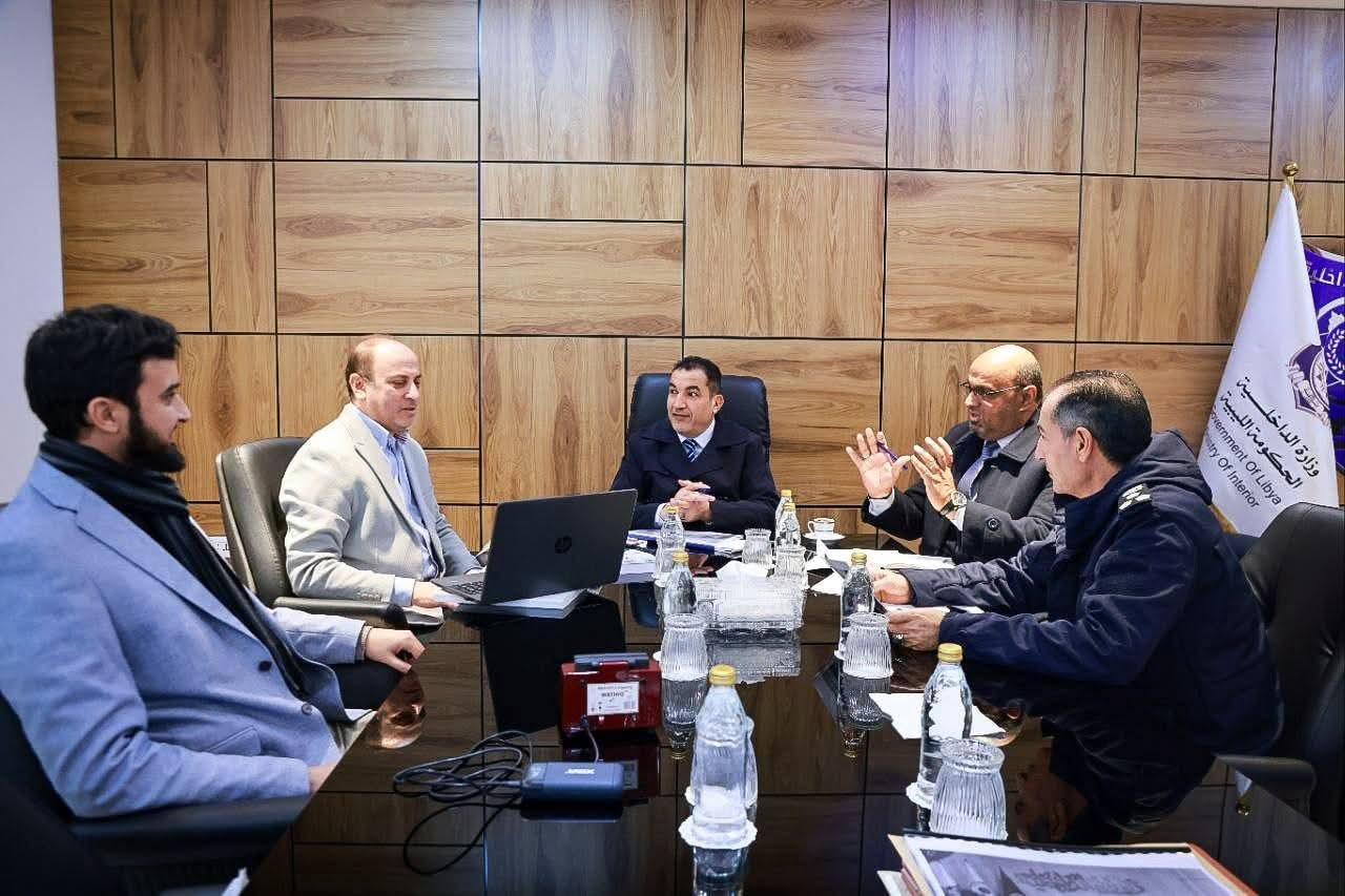 ترأس وزير الداخلية اللواء عصام أبوزريبة اجتماعاً رفقة مدير عام الشؤون الإدارية بالوزارة، اللواء فتحي المرتضى، ومدير قسم معلومات الأمن السيبراني بالوزارة، العميد عمار عبدالصمد، مع رئيس مجلس إدارة شركة الأبحاث للعلوم الهندسية والتقنية، خالد البرغثي وممثل الشركة الأوروبية الدولية للتعليم العالي والاستشارات، محمد فكرون، وذلك في إطار جهود معاليه لتطوير منظومات العمل الإداري والأمني بالوزارة
