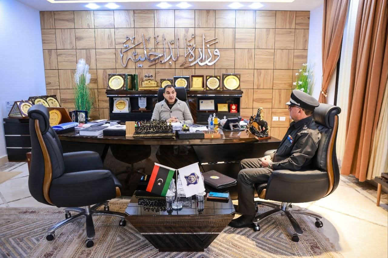 اجتمع وزير الداخلية اللواء "عصام أبوزريبة"، مع مدير الإدارة العامة لحماية البعثات الدبلوماسية اللواء "زياد الحاسـي"، للاطلاع على التقرير السنوي للإدارة ومناقشة الخطة الاستراتيجية للعام 2026