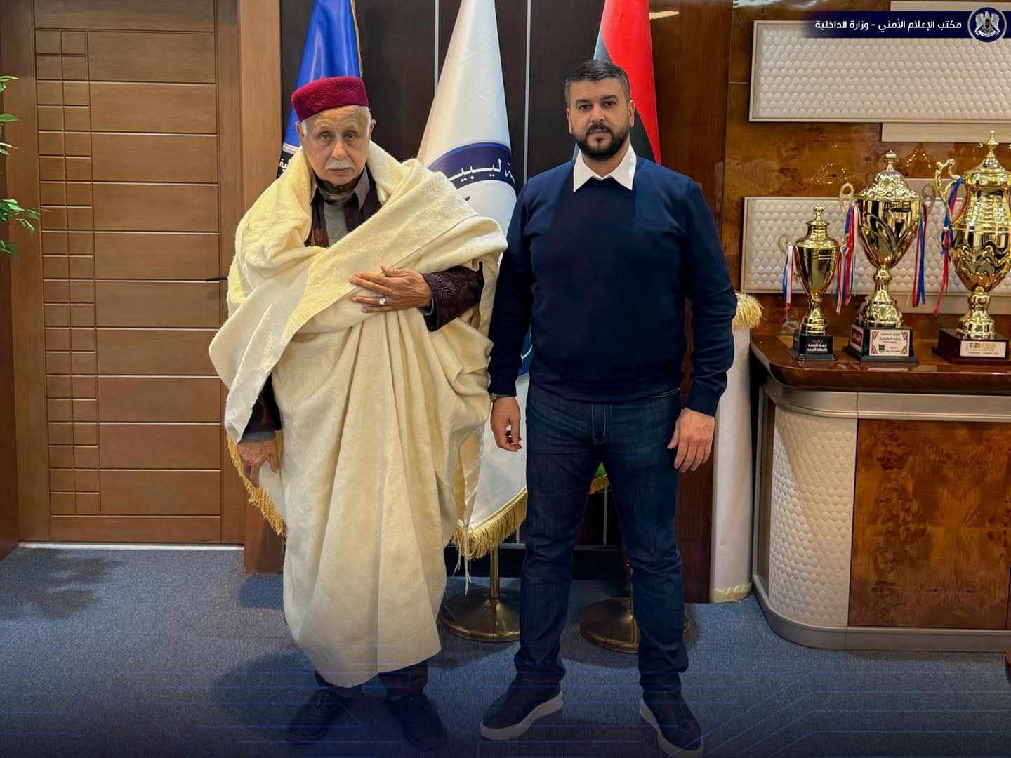 التقى وكيل وزارة الداخلية بالحكومة الليبية “فرج اقعيم”، في مكتبه بمدينة بنغازي شيخ قبيلة الشهيبات الحاج “عمر رشوان”، وذلك في إطار دعم جهود المكوّنات الاِجتماعية.
