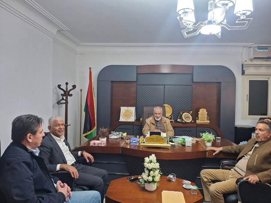 استضاف وزير الزراعة والثروة الحيوانية المهندس يونس سالم بوحسن بمكتبه في مدينة بنغازي النائب يوسف العقوري عن بنغازي والنائب عبدالحفيظ عن باطن الجبل إلى جانب وزير الاستثمار علي السعيدي حيث تناول اللقاء ملفات استثمار المشاريع الزراعية ودراسة استحداث مشاريع متنوعة لزيادة الإنتاج عبر التوسع الأفقي والرأسي كما عرضت خلال الاجتماع آخر المستجدات المتعلقة بالاتفاقية الدولية مع سهام باري الإيطالي والمركز الوطني للصحة الحيوانية وذلك في إطار جهود الحكومة الليبية لتعزيز التنمية الزراعية.