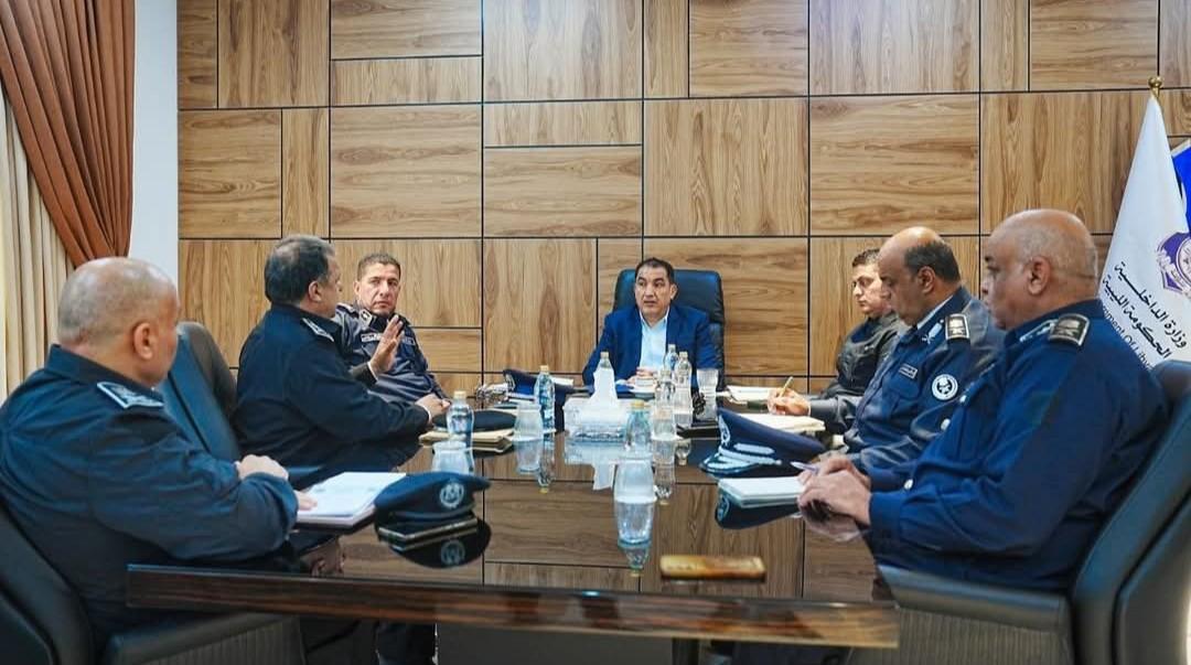 عقد وزير الداخلية اللواء عصام أبوزريبة اجتماعاً موسعاً ضم رئيس جهاز مكافحة الجرائم المالية وغسل الأموال اللواء.د "المهدي بيانكو"، ومدير الإدارة العامة للمرور والتراخيص اللواء "ميلود الفيتوري"، ومدير إدارة الشؤون الإدارية بالوزارة اللواء "فتحي المرتضي تناول الاجتماع مناقشة الإجراءات المعمول بها في مجالات تسجيل المركبات، وضبط المخالفات، وإصدار الرخص وكتيبات السيارات، كما تم استعراض سبل تطوير هذه الخدمات عبر إدخال التقنيات الحديثة، على أن يقوم مدير الإدارة بإعداد وتقديم مقترحات عاجلة تتضمن آليات تطوير العمل وتحديث الإجراءات في ختام الاجتماع، أكد على أهمية مواكبة التطورات التقنية في مجال الخدمات المرورية، مشدداً على ضرورة تسريع وتيرة التحديث ورفع كفاءة الأداء بما ينعكس إيجاباً على تنظيم العمل وتحسين مستوى الخدمة المقدمة للمواطنين