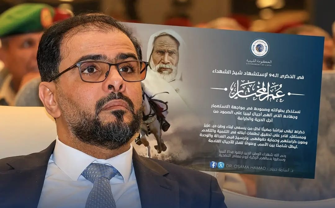 أكدت الحكومة الليبية تمسكها الراسخ بقيم الاستقلال والكرامة الوطنية، وذلك في الذكرى الـــ 94 لاستشهاد شيخ الشهداء عمر المختار، رمز المقاومة الوطنية في وجه الاستعمار الإيطالي