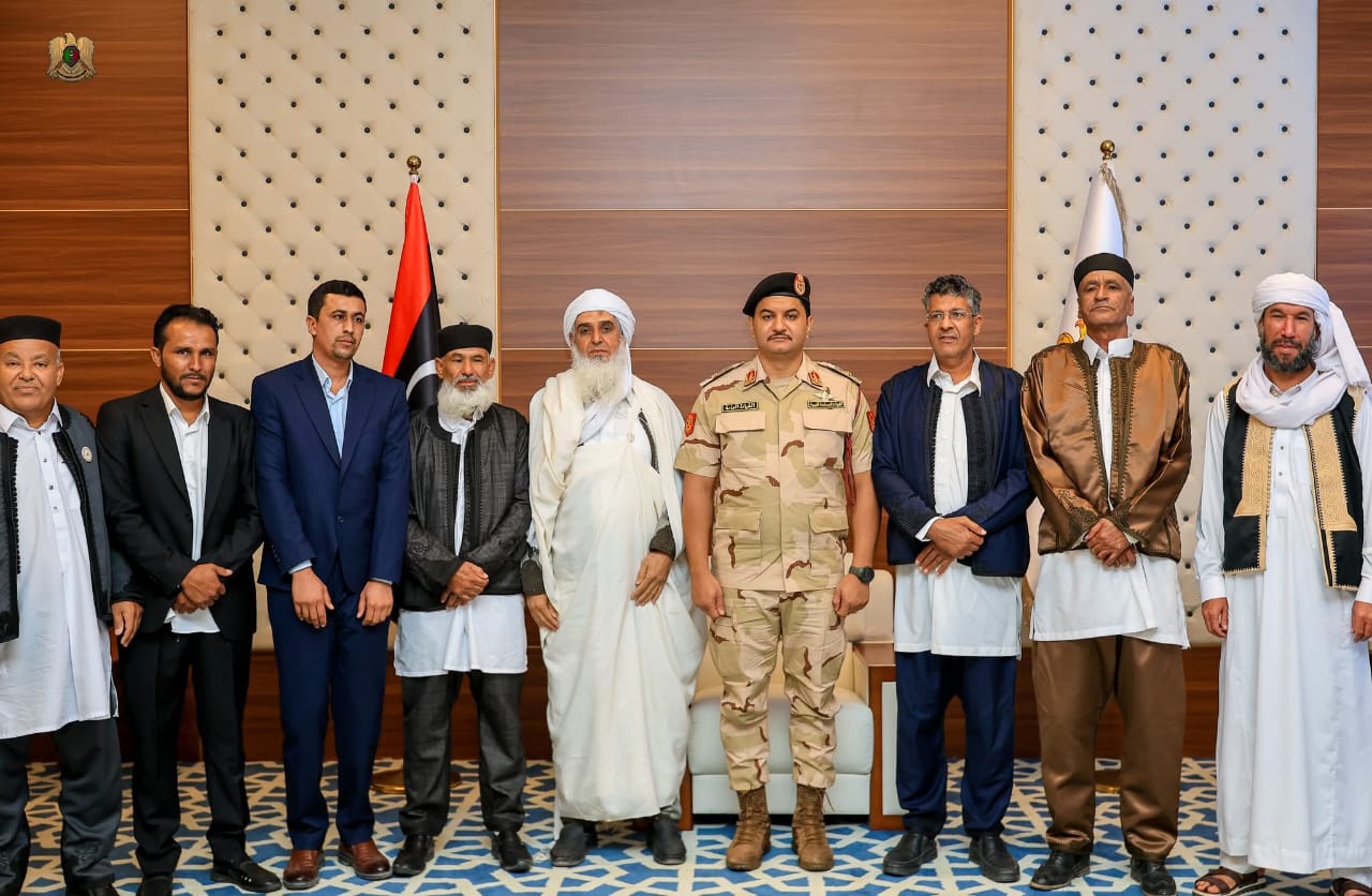 التقى الفريق أول ركن صدام حفتر، نائب القائد العام للقوات المسلحة، خلال زيارته إلى مدينة سبها، مشايخ وأعيان قبيلة الحطمان، ضمن إطار رحلة الوفاء.ورحب مشايخ وأعيان القبيلة بنائب القائد العام، مؤكدين دعمهم الكامل للقوات المسلحة بقيادة المشير خليفة حفتر، معبريين عن تقديرهم لما تشهده المنطقة الجنوبية من أمن واستقرار بفضل جهود القوات المسلحة وتضحيات منتسبيها.بدوره، شدد نائب القائد العام على أن القيادة العامة تعمل على إعداد رؤية شاملة للنهوض بمناطق الجنوب من خلال برامج تنموية وخدمية تراعي خصوصية المنطقة وتلبي احتياجات سكانها، في إطار التنمية الوطنية المستدامة