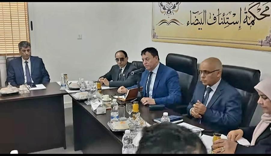 عقد رئيس المجلس الأعلى في مقر محكمة استئناف البيضاء اجتماعا موسعا ضم رؤساء الهيئات القضائية في نطاق محاكم استئناف البيضاء ودرنة وطبرق حيث تناول الاجتماع أوضاع الهيئات القضائية واحتياجاتها ومتطلباتها اللازمة لتعزيز سير العمل وتذليل الصعوبات بما يضمن رفع كفاءة الأداء وترسيخ مبادئ العدالة.